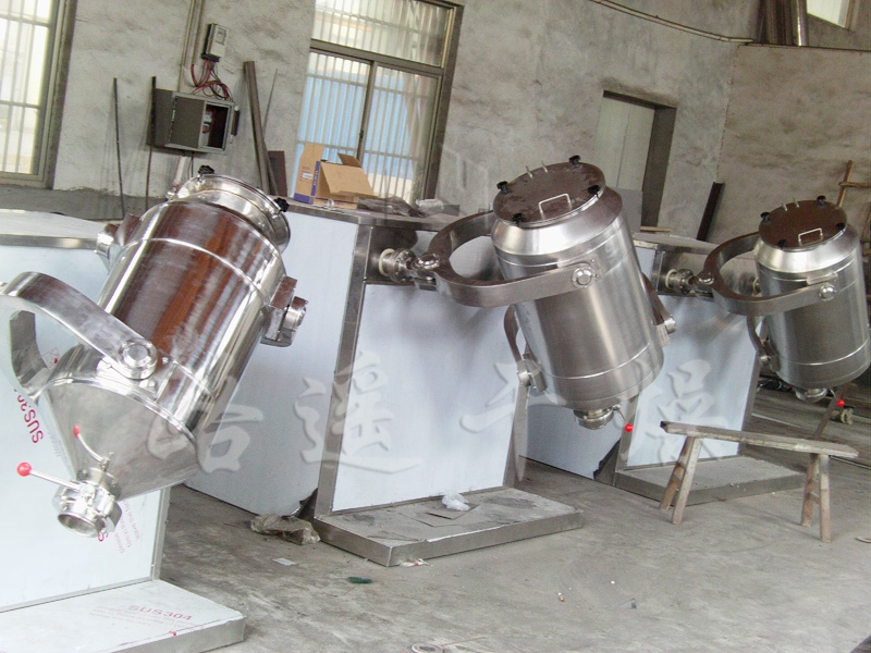 該機(jī)在運(yùn)行中,由于混合桶體具有多方向運(yùn)轉(zhuǎn)動作,使各種物料在混合過程中加速了流動和擴(kuò)散作用,同時避免了一般混合機(jī)因離心力作用所產(chǎn)生的物料比重偏析和積聚現(xiàn)象,混合無死角,能有效確?;旌衔锪系钠焚|(zhì)。