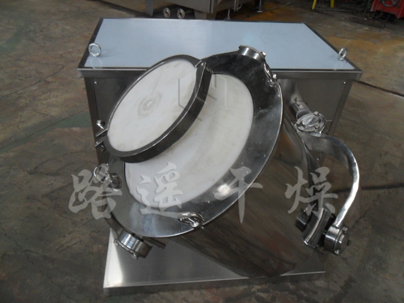 結(jié)構(gòu):該機(jī)由機(jī)座、傳動系統(tǒng)、電器控制系統(tǒng)、多向運(yùn)動機(jī)構(gòu)、混合筒等部件組成。與物料直接接觸的混合筒采用優(yōu)質(zhì)不銹鋼材料制造,桶體內(nèi)外壁均經(jīng)鏡面拋光。